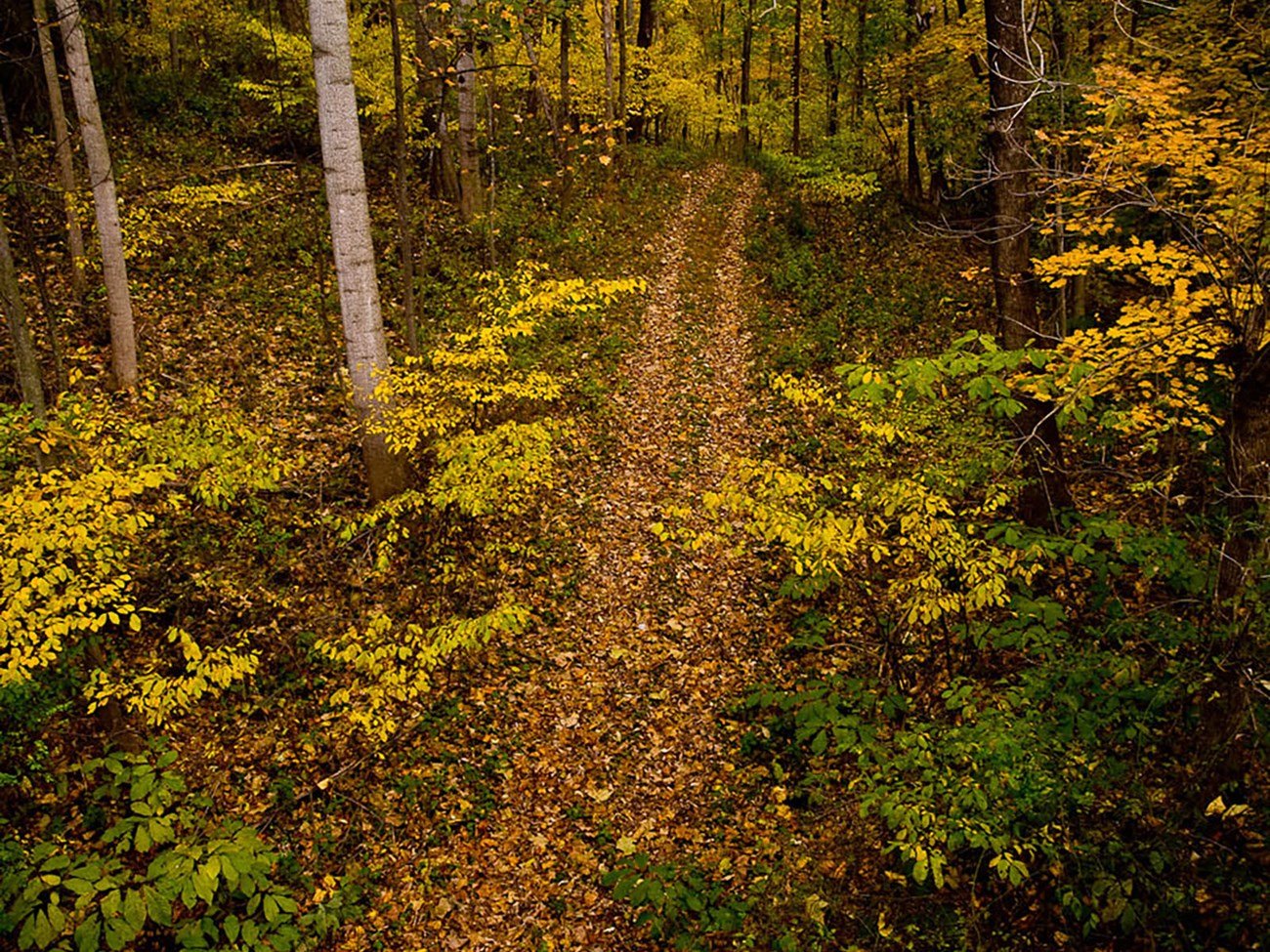 Modern editorial photograph of a northeastern forest path or Connecticut coastline. Public domain or Creative Commons preferred. IMAGE NEEDED.